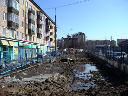 Трамвайные пути, шедшие от Ваганьковского путепровода, шли прямо, заворачивали направо под путепровод и вели прямо к Краснопресненскому трамвайному депо. Сейчас депо переехало в Строгино, а сама территория будет переоборудована под троллейбусный парк. Сюда переедет 5-й троллейбусный парк им. Артамонова, который кстати также в свое время занял место закрытого Артамоновского депо.