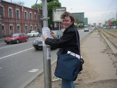 Здесь представлена только небольшая часть нашей огромной работы. Но борьба продолжается. И нам требуется Ваша помощь! Для этого просим Вас по мере своих возможностей распечатать объявления, о которых здесь говорилось и расклеивать их по всей трассе 23-го маршрута. Делать это нужно ежедневно. Где-то их сорвали, где-то оторвали квиточки. Можно ехать на 23-м, смотреть состояние объявлений и менять при необходимости. Объявление в формате Word есть здесь. Щелкните мышью и оно раскроется. Нужно еще расклеить объявления на столбах, на досках объявлений, в подъездах домов, близлежащих к трассе 23-го трамвая. Кроме того нам нужна помощь в раздаче листовок. Последняя версия листовки и письма жителя лежит здесь. Просьба распечатать ее с двух сторон и раздавать пассажирам 23-го трамвая по всей трассе, плюс в трамваях других (6, 10, 15, 21, 27, 28, 30) краснопресненских маршрутов. Мы Вам будем очень признательны. И тому есть пример. Огромное спасибо автору вот этой оригинальной листовки, расклеенной по трассе 23-го трамвая!