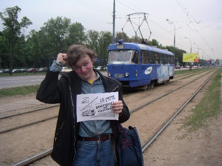 23 мая 2003 г. Руководитель Комплекса архитектуры, строительства, развития и реконструкции города Ресина В.И. подписал распоряжение 345-РЗМ от 23.05.2003 о реконструкции Ленинградского проспекта со снятием движения трамвая. Реакция нашего Комитета "Москвичи ЗА трамвай", членом которого я являюсь, не заставила себя долго ждать. Началась плодотворная работа по сохранению линии. Это прежде всего письма, листовки, статьи в СМИ. Ведется работа и на высшем уровне. Вся информация по действиям Комитета относительно Ленинградского проспекта доступна на странице Комитета в рамках сайта Московский трамвай. Вашему вниманию представляю небольшой фотоотчет о событиях и действиях Комитета, развернувшихся в районе Ленинградского проспекта. Фотоотчет будет постепенно обновляться по мере происходящих событий. Представив данные фотоматериалы, хотелось бы показать нашу огромную работу, проделываемую ежедневно и призвать Вас помочь в нашей общей борьбе за сохранение в нашем родном городе перспективного скоростного экологически чистого вида транспорта! Часть 1 посвящена агитационной работе среди населения, часть 2 посвящена пикету на Пушкинской площади 9-го июня, а 3-я часть митингу за трамвай