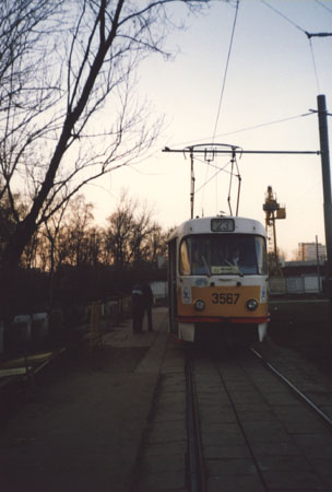 Осенью 2000 года после закрытия участка Шмитовский проезд - Ваганьковское кладбище трамваи 23-го маршрута стали разворачиваться на новом кругу "Ваганьково", разместившемся около самого кладбища. Теперь пассажирам, едущим к кладбищу приходится проделать небольшой путь пешком до главного входа. Ну а те, кто собрались добраться до Шмитовского проезда простоят в огромной пробке, которая частенько возникает на улице 1905 года. Автобуса, заменившего здесь трамвай им придется ждать очень долго! Кстати, по ул. Сергея Макеева он стал ходить совсем недавно. Видеокамера запечатлела огромный поток машин, а на месте трамвайной линии на улице Сергея Макеева стоят припаркованные авто.